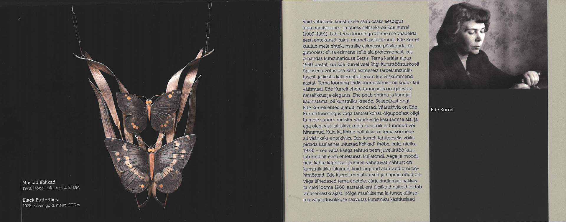 Raamat kaasneb samanimelise näitusega, mille koostaja Merike Alber uurib 1931. aastal Riigi Kunsttööstuskooli (tänase Kunstiakadeemia) metalli- ja portselanimaali eriala lõpetanud Ede Kurreli ehtekunsti loomingut. Kurreli enam kui pool sajandit kestnud kunstnikutee algas 1930. aastal Eesti esimesel tarbekunstinäitusel. Kurreli kujunemine hinnatud juveliiriks oli kiire, nime tõi talle esinemine 1937. aasta Pariisi maailmanäitusel ja seal saadud hõbemedal filigraani eest.
