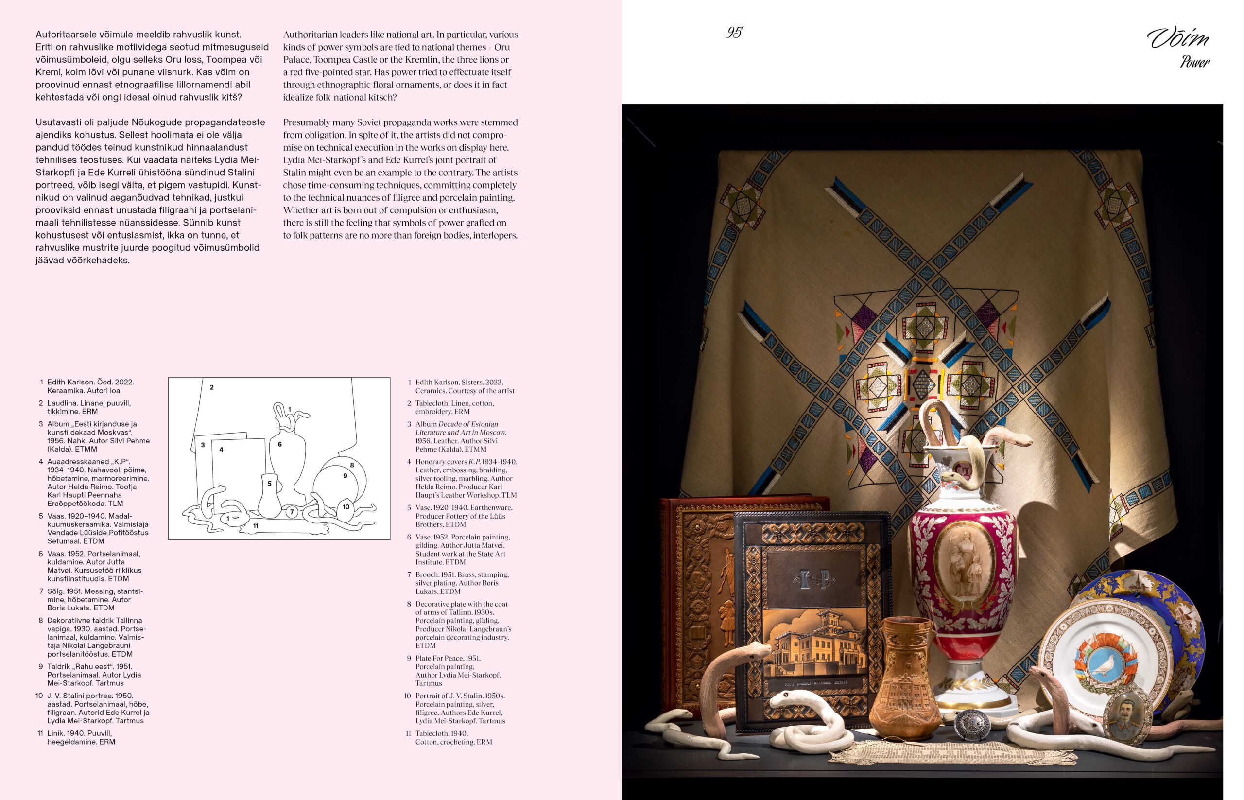 Raamat kaasneb samanimelise näitusega, mille koostanud kunstnik Jaanus Samma vaatleb rahvuslike mustrite ja kujundite kasutamist Eesti tarbekunstis ja -graafikas 1930.-1950. aastatel, osutades kattuvatele märkidele ja sümbolitele. Tema tähelepanu keskmes on perioodid, mida tavapäraselt teineteisele vastandatatkse: 1930. aastate „vaikiv ajastu“ ning varane Nõukogude aeg II maailmasõja järel.